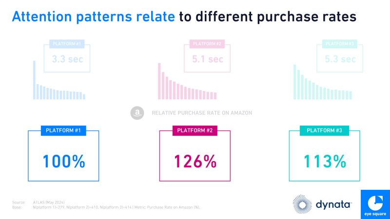 Attention metrics, particularly attentive seconds, are proving to be powerful predictors of sales lift. A study by Dynata and eye square, leveraging realeyes attention measurement technology, examined the impact of vertical video ads on purchase behavior. The study found that different platforms have varying attention retention and purchase rates, with attentive seconds significantly enhancing the prediction of actual sales.