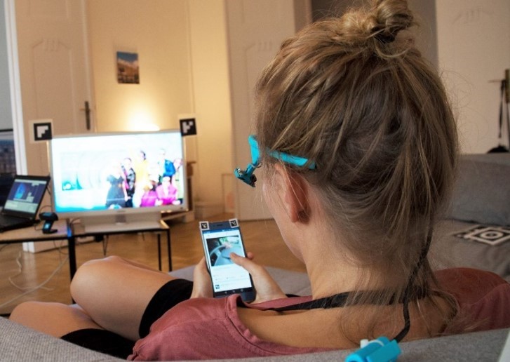 Mobile devices: can be tracked particularly well with headmounted eye trackers. They are able to automatically detect markers, making the analysis process easier. The 2-4 markers define a particular device (phone, tablet, TV) or an area (dashboard, newspaper).