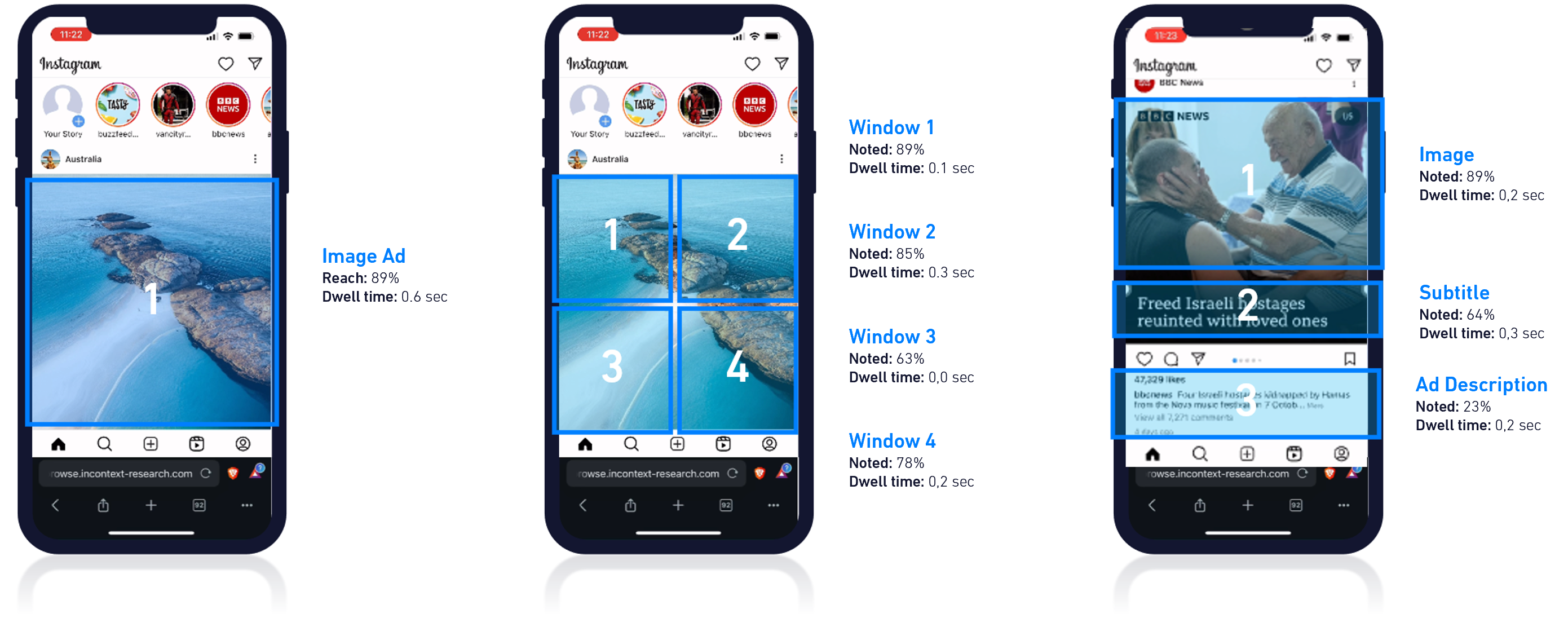 While users explore the social media platform, the eye tracking software silently records participants’ viewing behavior and collects valuable metrics such as ad dwell time and interactions