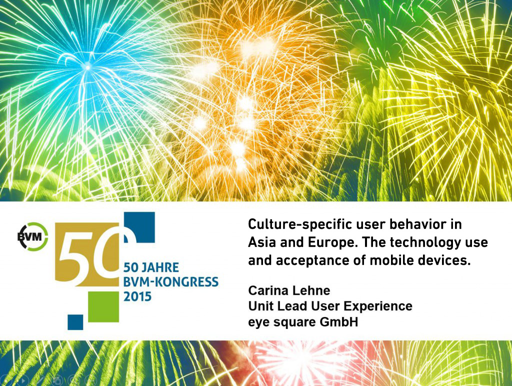 Within the framework of the congress programme, Carina Lehne (Head of UX, eye square) will present results from intercultural UX studies in her talk ‘Culture-specific user behaviour in Asia and Europe. The technology use and acceptance of the mobile devices’.